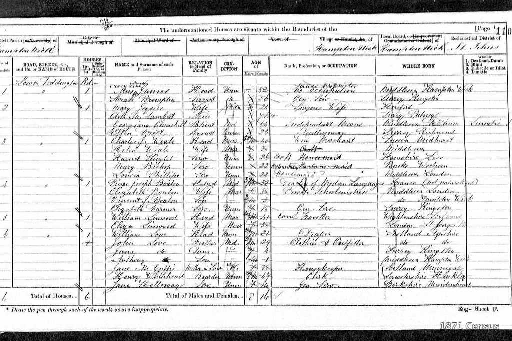 1871 Census Schedule # 6