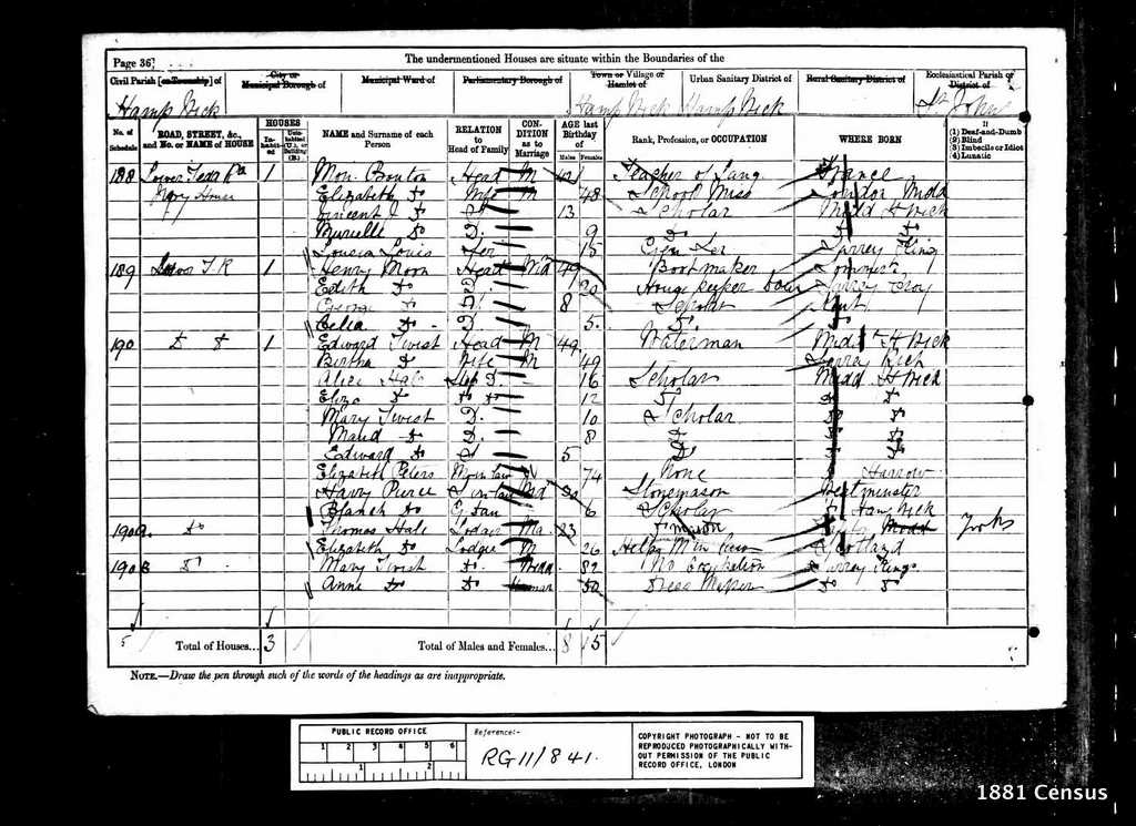 1881 Census Schedule # 190