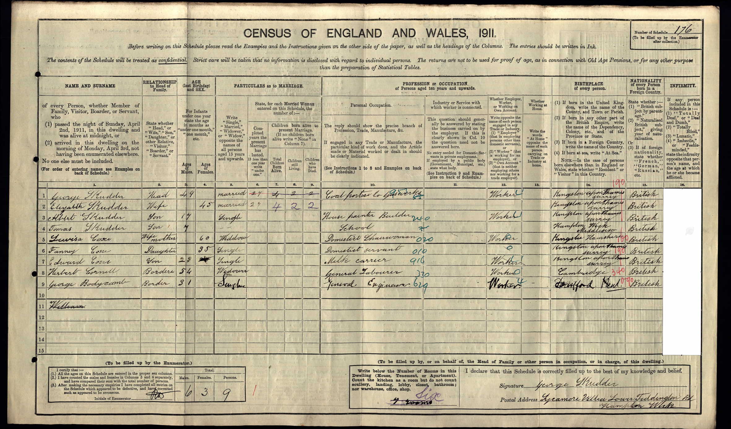 1911 Census Schedule # 176