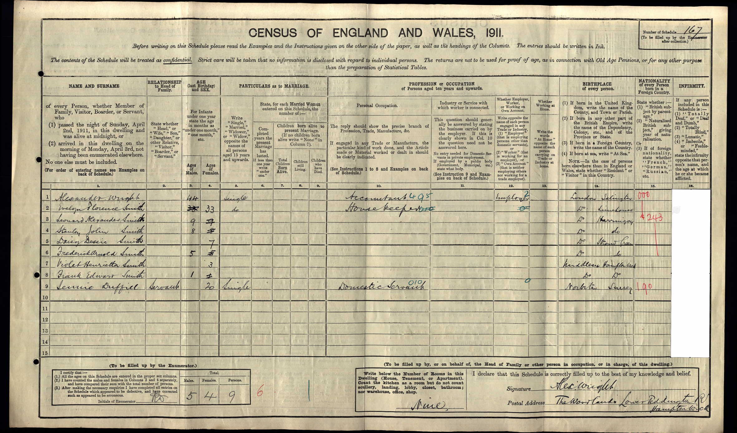 1911 Census Schedule # 167